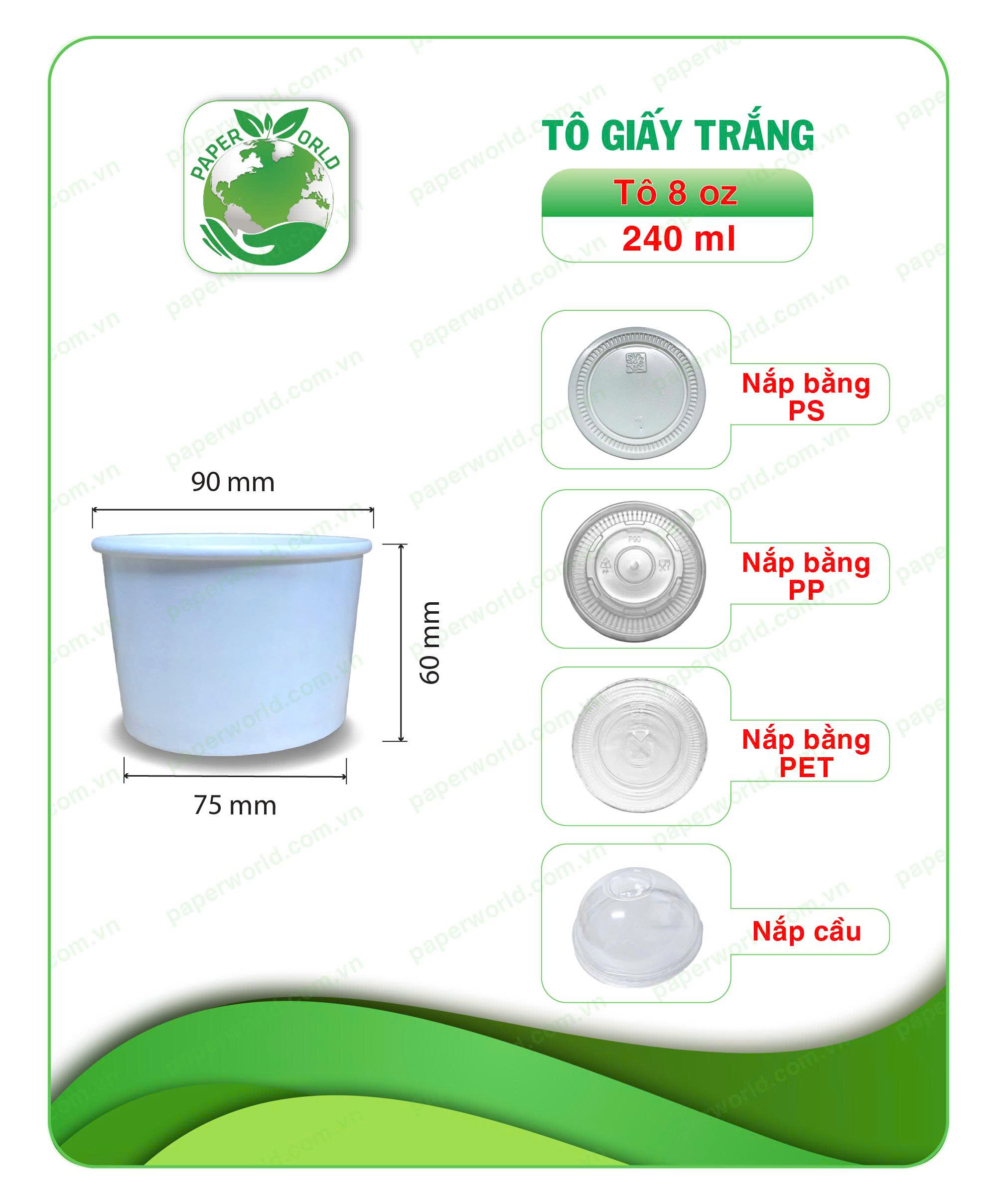 Cao 160mm x Miệng 90mm x Đáy 62mm